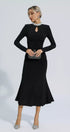 Christina Siyah İnci Desenli Uzun Kol Maxi Elbise