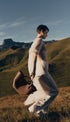 Bu dalgalı, katlı ve kıvrımlı tasarıma sahip heykelsi kompakt tote çanta iki şekilde kullanılabilir. Sepet tarzı, kenarları açık ve askıları dışarıda, ya da çiçek şeklinde kapalı çanta olarak, kenarları içe katlanmış ve askıları içte çaprazlanmış olarak.