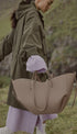Bu dalgalı, katlı ve kıvrımlı tasarıma sahip heykelsi tote çanta iki şekilde kullanılabilir. Sepet tarzı, yanları açık ve askıları dışarıda, veya yanları içe kıvrık ve askıları içte çaprazlanmış çiçek benzeri kapalı çanta olarak.