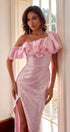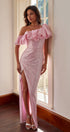 Claire Pembe Payet Fırfırlı Düşük Omuzlu Maxi Elbise