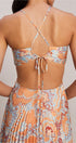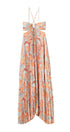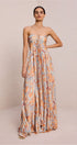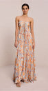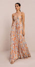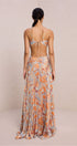 Clara Baskılı Boyundan Bağlı Pileli Uzun Elbise