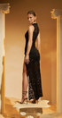 - Tasarım: Dantel kesimli ve derin yırtmaçlı kolsuz bedene oturan elbise