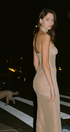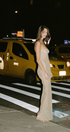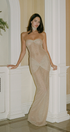 Claudine Straplez Kıvrımlı Uzun Elbise Bej