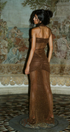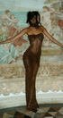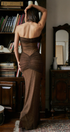Claudine Straplez Kıvrımlı Uzun Elbise Kahverengi