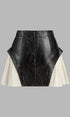 Renk Bloklu Suni Deri Mini Etek