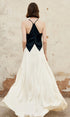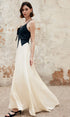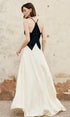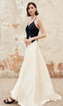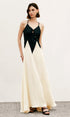 Renk Bloklu Pileli Kesimli Askılı Uzun Elbise