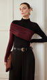 Renk Bloklu Pliseli Jersey Dar Bluz