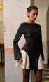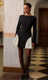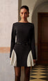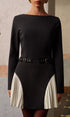 Renk Bloklu Yan Pile Detaylı Kemerli Kısa Elbise