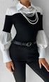 Renk Bloklu İnce Yaka Üst