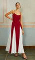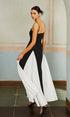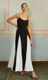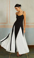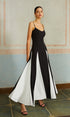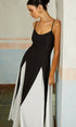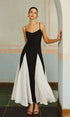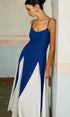 Renk Bloklu Spagetti Askılı Uzun Elbise