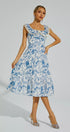 Connie Mavi Çiçek Puf Kol Midi Elbise