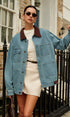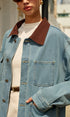 Kontrast Yaka Çok Yönlü Kot Ceket