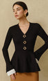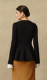Kontrast Manşetli Fırfır Detaylı Triko Üst