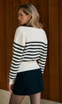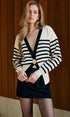 Zıt Renk Çizgili Metal Düğmeli Hırka