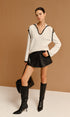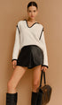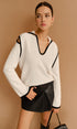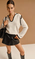 Kontrast Biyeli Kesik Detaylı Yaka Triko