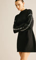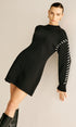Kontrast Kesim Kazak Kısa Elbise