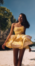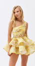Cora Tek Omuzlu Fırfırlı Kesim Mini Elbise Sarı