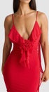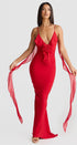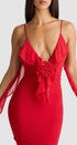 Cornelia Fırfırlı Çiçek Aplikeli Uzun Elbise