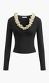 Pamuklu Slim Fit Çiçek Biyeli Tişört