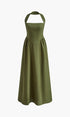 Pamuk Ve Keten Askılı A Kesim Uzun Elbise