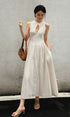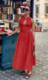Pamuk Ve Keten Pileli Kesim Uzun Elbise