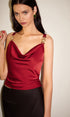 Drapeli Yaka Metal Detaylı Saten Atlet Bluz
