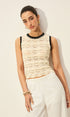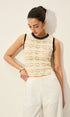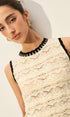 Tığ İşi Kontrast Süslemeli Kazak Yelek