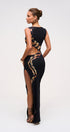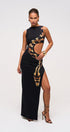 Özgün yılan deseni, keskin detayları ve feminen kalıbıyla bu elbise, davetlerde tüm gözleri üzerinize çeker.