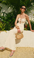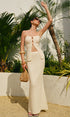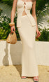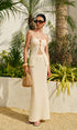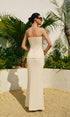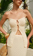 Straplez Kesik Detaylı Dokulu Etek Takımı