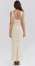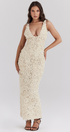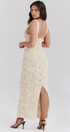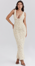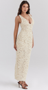 Cyprine Derin Yaka Sırtı Açık Uzun Elbise