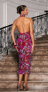 Karahindiba Boyundan Bağlı Payet Midi Elbise