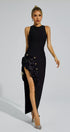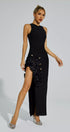 Darcy Siyah Gül Yırtmaçlı Bandaj Maxi Elbise