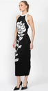 Darlene Halter Çiçekli Açık Sırt Midi Örgü Elbise