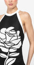 Gül Motifli Boyundan Bağlamalı Midi Elbise ile şıklığı kucaklayın. Şık boyundan bağlamalı tasarıma, kolsuz kesime ve büyüleyici gül motifine sahip bu elbise, açık sırtı ve kontrast detayıyla dikkat çekiyor. Çok esnek trikodan üretilen bu ürün, hoş bir uyum ve üstün konfor sunar.