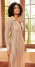 Şafak V Yaka Yakalı Tığ İşi Maxi Elbise