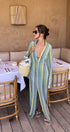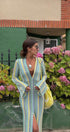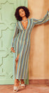 Şafak V Yaka Yırtmaçlı Tığ İşi Maxi Elbise