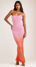 Debby Baskılı Büzgülü File Korse Uzun Elbise