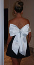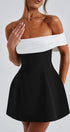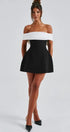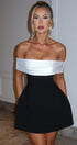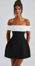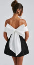 Bu çok romantik ama modern tarz, istek listemizin başında yer alıyor. Omuzlarınızı gösteren kontrast bardot yakayla tasarlanan ve sırt kısmında rüya gibi fiyonk detayıyla süslenen Delta'da kendinizi ifade edin. Eğlenceli mini uzunluktaki görünüm, yuvarlak, kabarcık şeklindeki etekle tamamlanıyor.