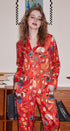 Bu turuncu tatlı desenli pijama takımı, hafif kumaşı rahat kesimle birleştirerek hem konfor hem de stil sunar. Düğmeli, uzun kollu üst kısmı ve uyumlu pantolonuyla, rahat ilkbahar ve sonbahar dinlenmeleri için mükemmeldir.
