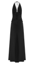 Dantel Bel Detaylı Saten Halter Uzun Elbise – Siyah