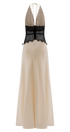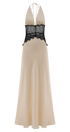 Siyah Dantel Detaylı Saten Uzun Elbise