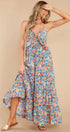 Doris Baskılı Düğümlü Büzgülü Uzun Elbise