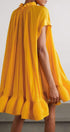 Pelerin Efektli Mini Elbise ile tarzınızı yükseltin. Bu elbise, şık ve sofistike bir görünüm yaratan zarif pelerin efektli kollara ve eğlenceli fırfırlı etek ucuna sahiptir. Belinizi saran kemer siluetinizi vurgularken, mini uzunluk modern ve rahat bir uyum sunar.