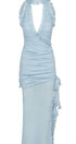 Eartha V Yaka Fırfırlı Maxi Elbise