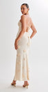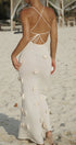 Akşam etkinlikleri veya özel günler için mükemmel olan bu elbise, askılı topuklu ayakkabılar ve zarif mücevherlerle güzel bir şekilde eşleşiyor. Bağcıklı açıklık ayarlanabilir bir uyum sağlar ve elbisenin şık tasarımını geliştirir. Bedeninize sadık kalarak ideal uyum için beden tablomuza bakın ve hem sofistike hem de rahat bir görünümü benimseyin.