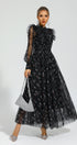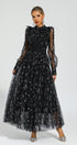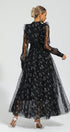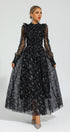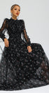 Elara Siyah Çiçekli Uzun Kol Uzun Elbise