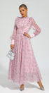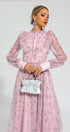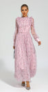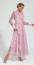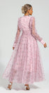 Elara Pembe Çiçekli Uzun Kol Uzun Elbise