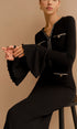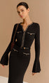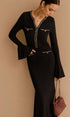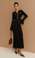 Zarif Kontrast Biyeli Fırfırlı Dar Elbise (Kemersiz)