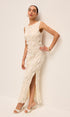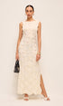 Zarif İşlemeli Yırtmaçlı Uzun Elbise
