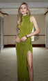 Zarif Yırtmaçlı Ara İlmekli Elbise